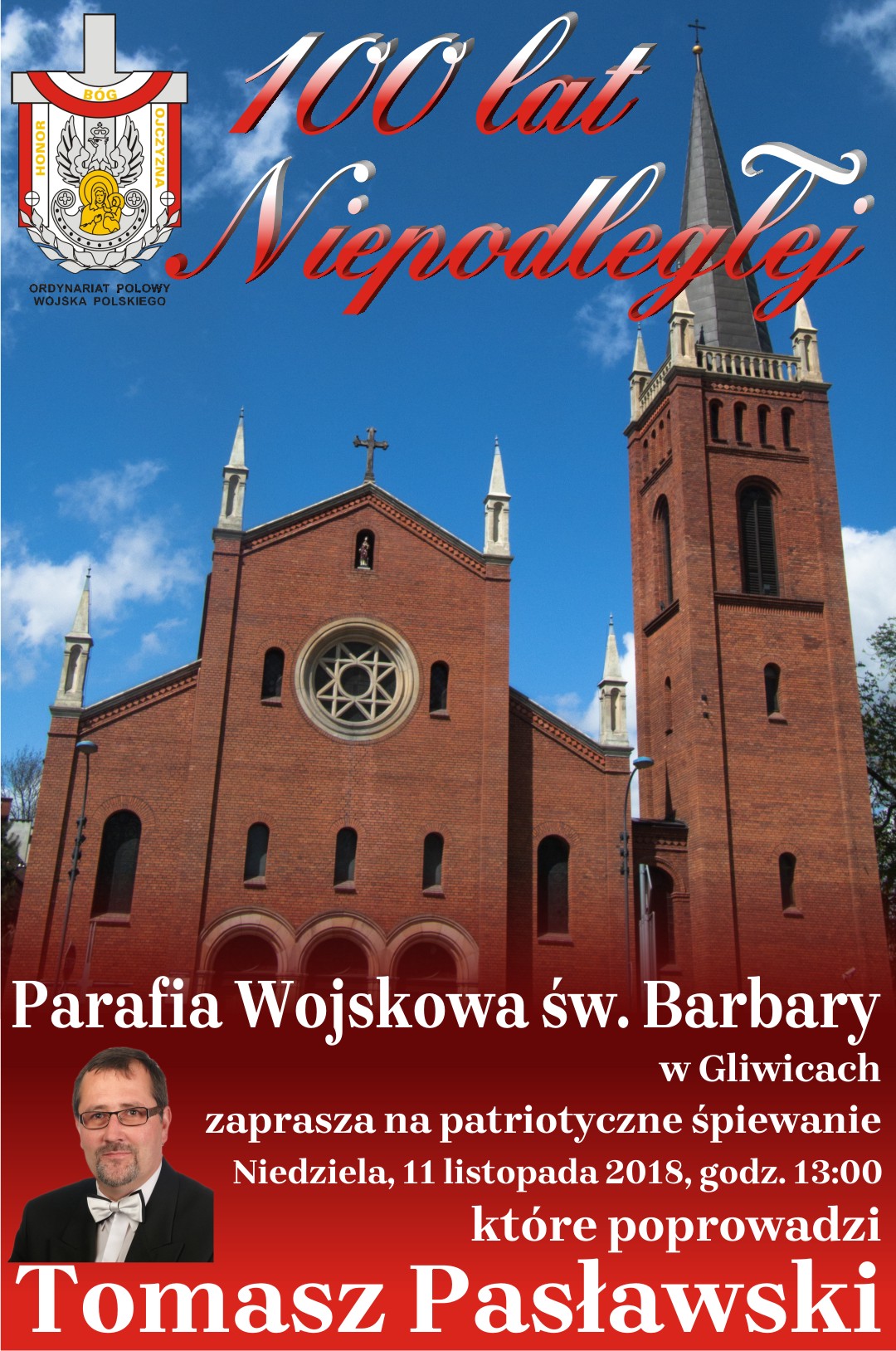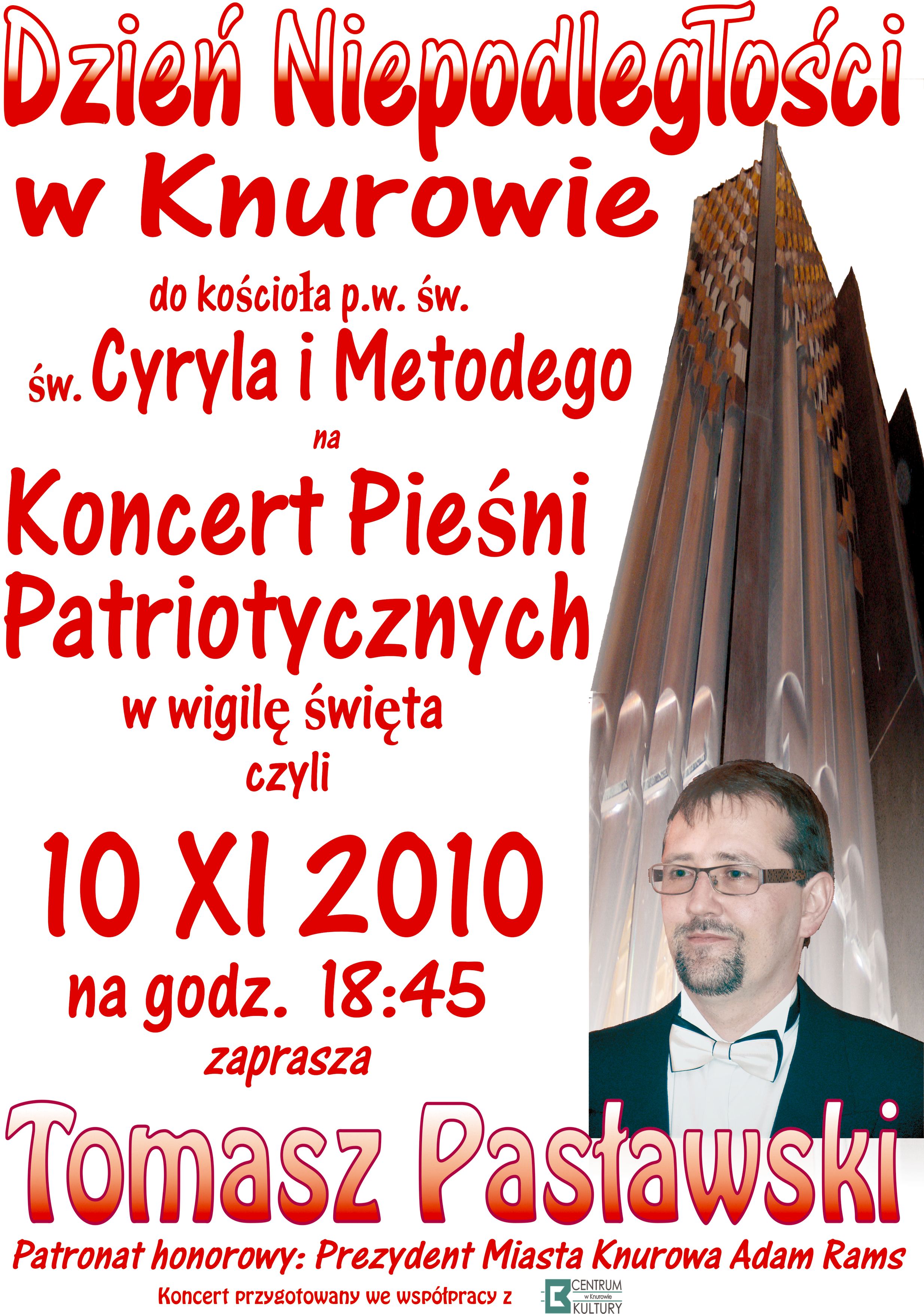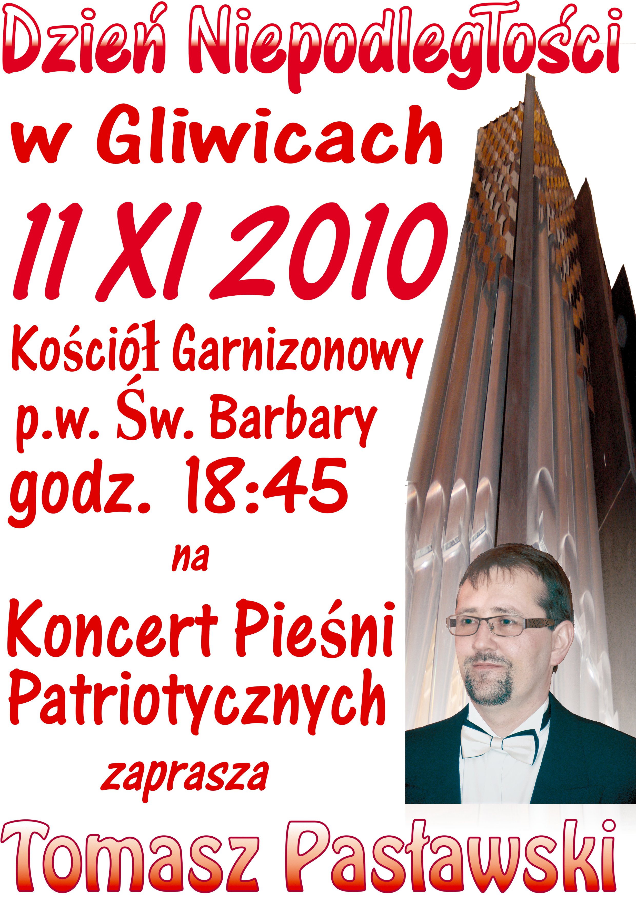 W środę 10 XI 2010 serdecznie zapraszam do kościoła św. Cyryla i Metodego w Knurowie, zaś we czwartek 11 XI 2010 do kościoła garnizonowego p.w. św. Barbary w Gliwicach na koncert pieśni patriotycznych.